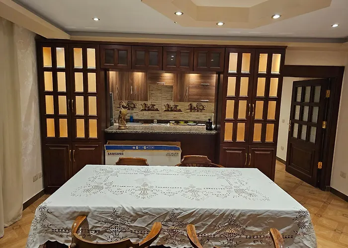 The 2-room Cute Apartment lies at a distance of 1.4 km from Wash n Coffee and around 10 minutes' walk from Tora El-Balad tube station. Guests can take a dip in a private swimming pool to relax after a long day.